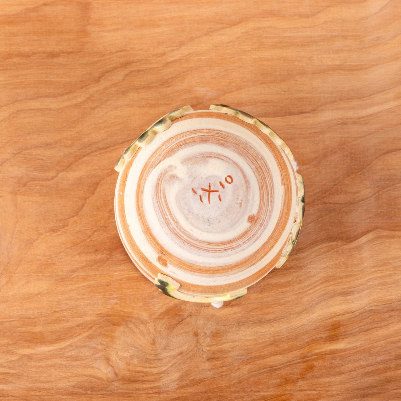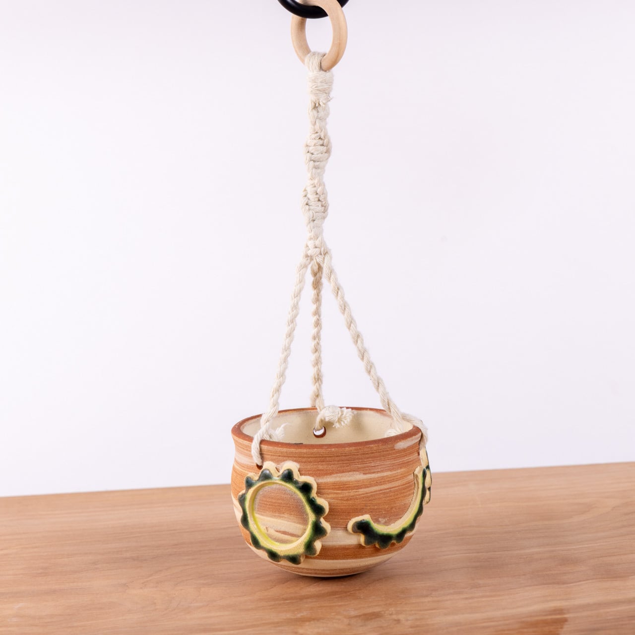 「ゴーヤー」をモチーフにした.沖縄の伝統的な焼物“やちむん”のハンギングプランターです。