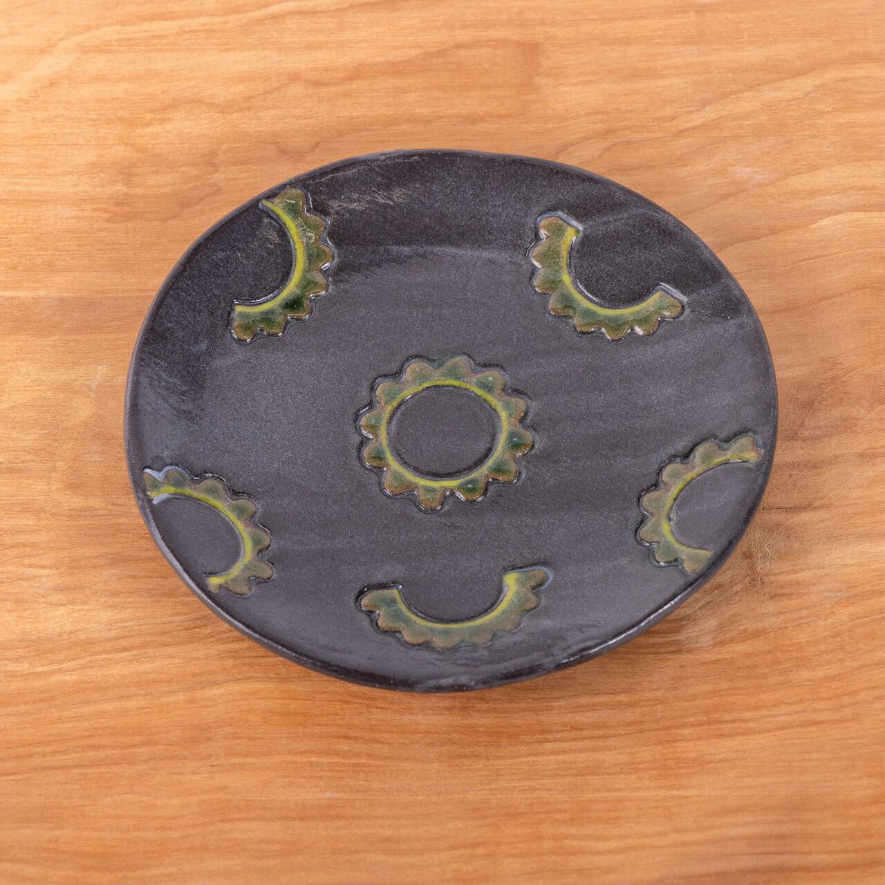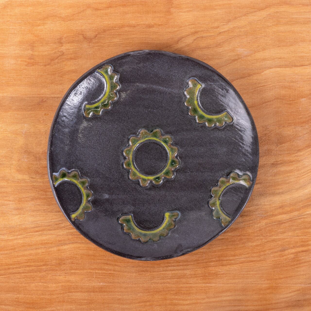 「ゴーヤー」をモチーフにした、沖縄の伝統的な焼物“やちむん”の中皿です。