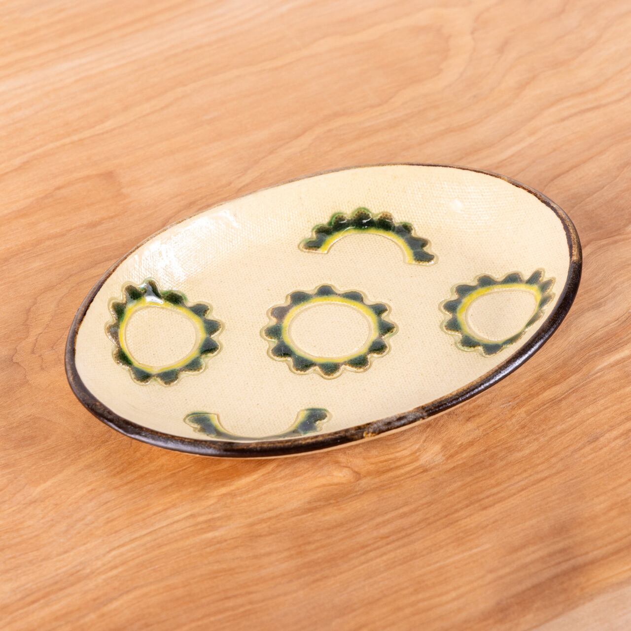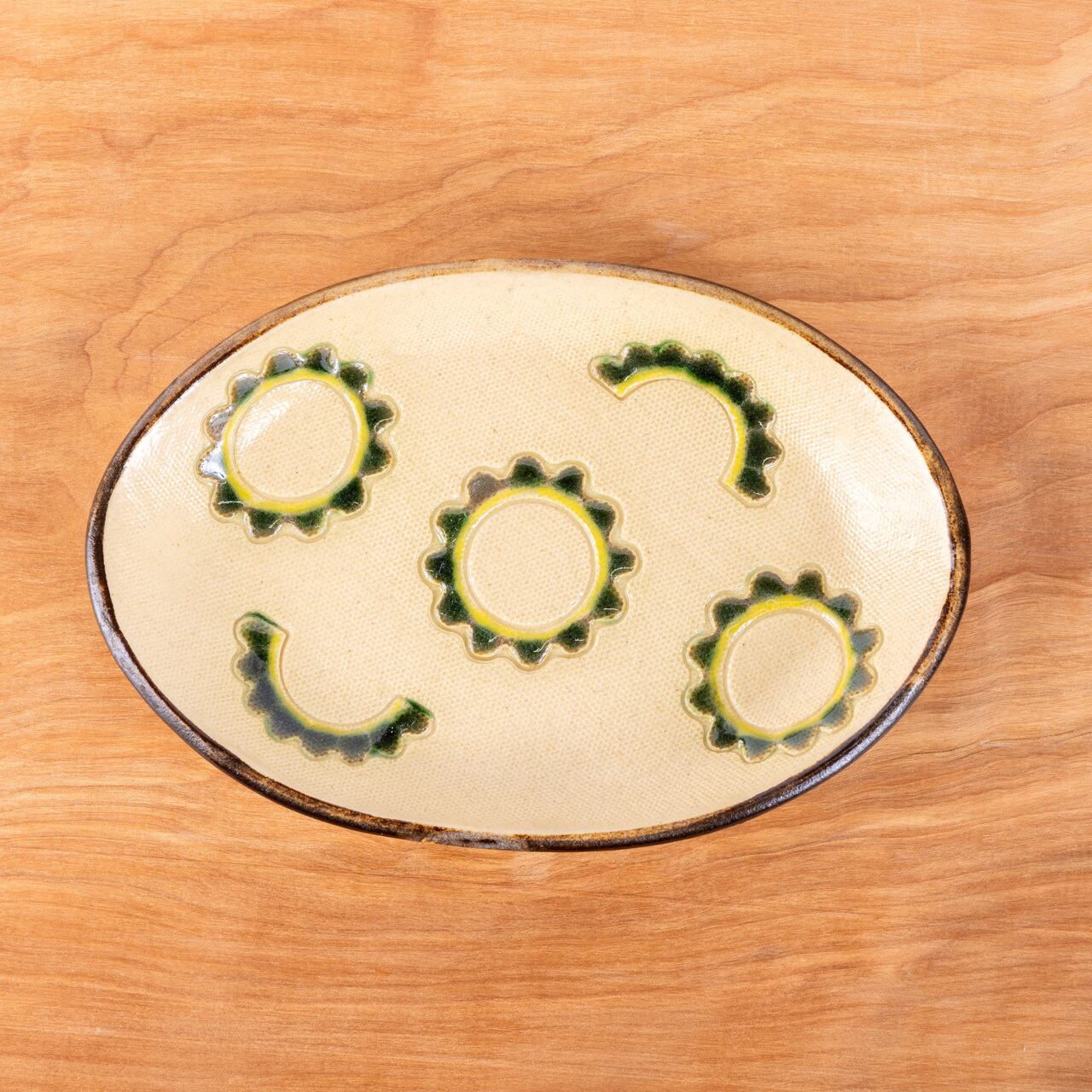 「ゴーヤー」をモチーフにした、沖縄の伝統的な焼物“やちむん”のオーバル中皿です。