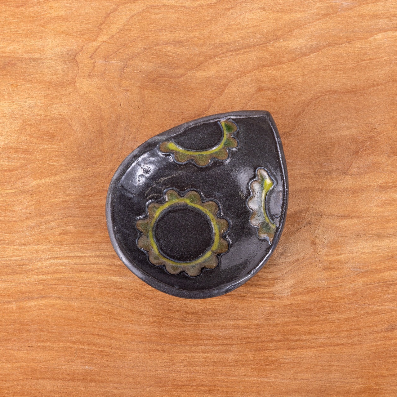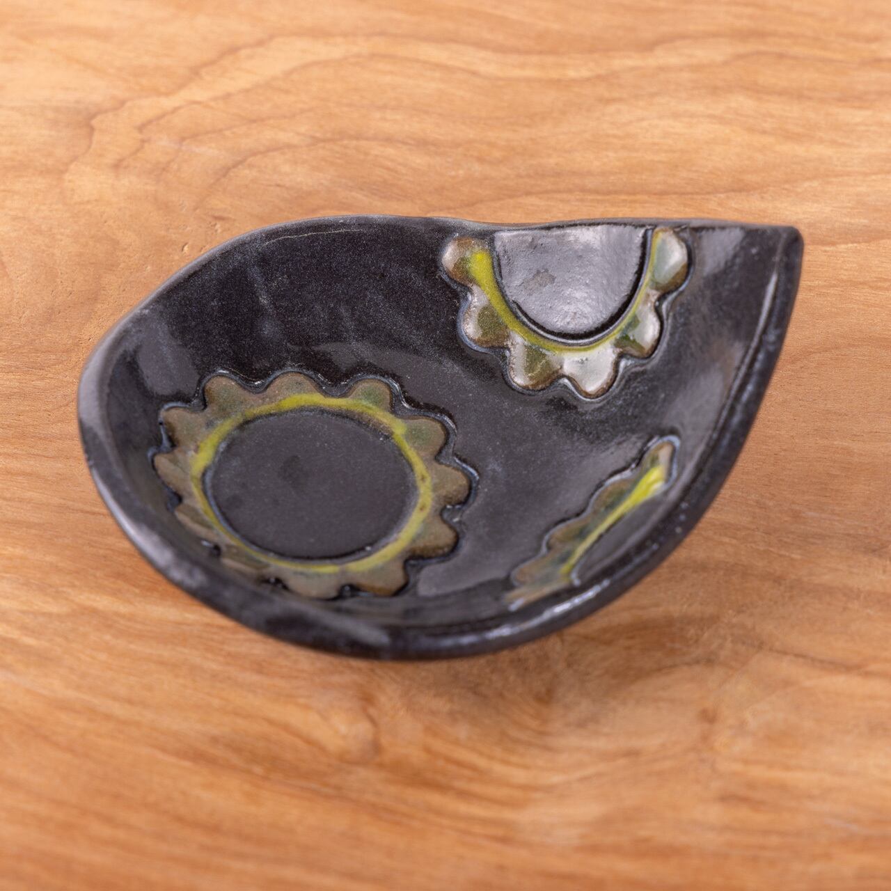 ゴーヤー柄の豆皿 黒(雫型)
