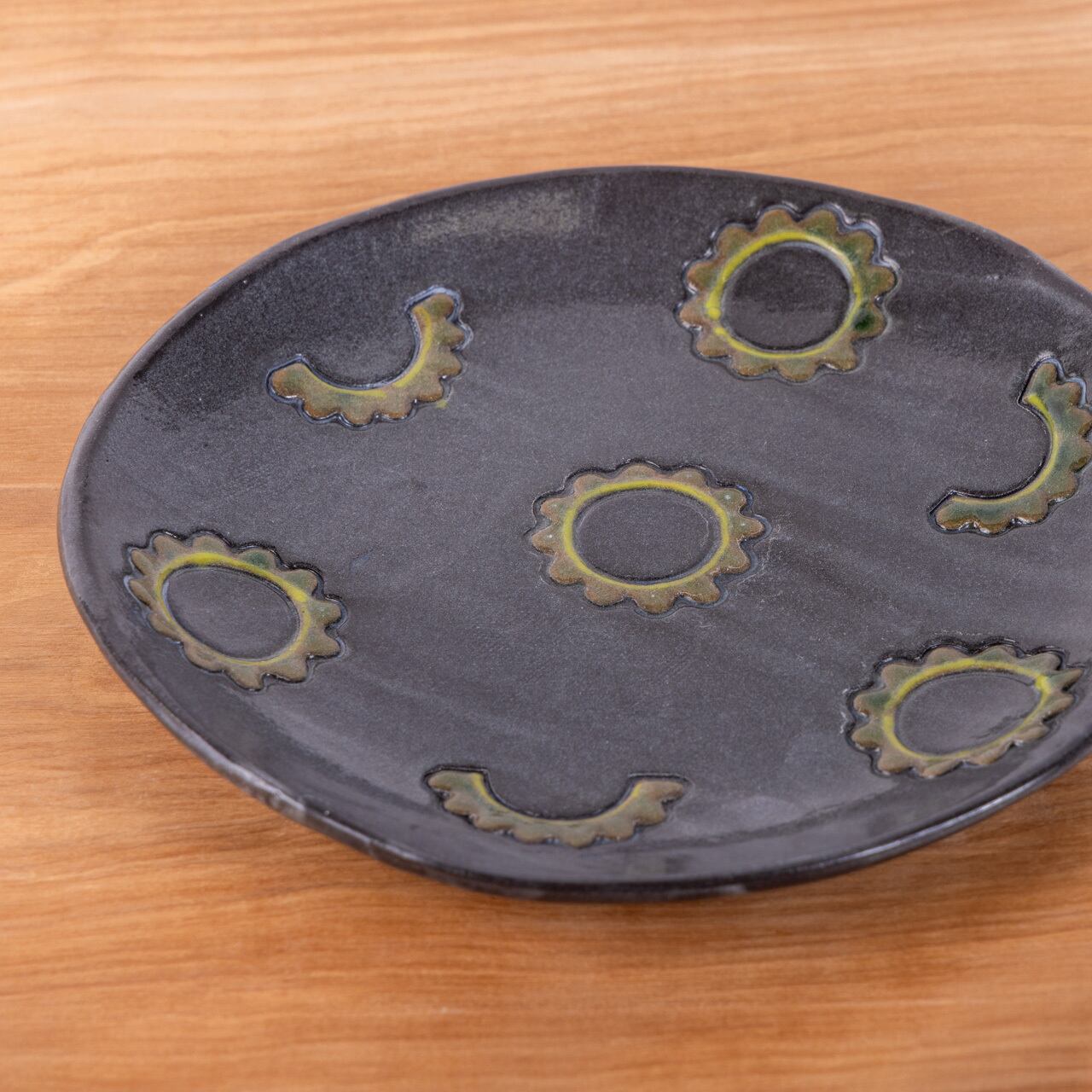 「ゴーヤー」をモチーフにした、沖縄の伝統的な焼物“やちむん”の大皿です。