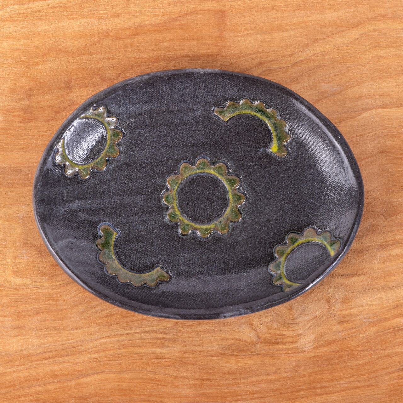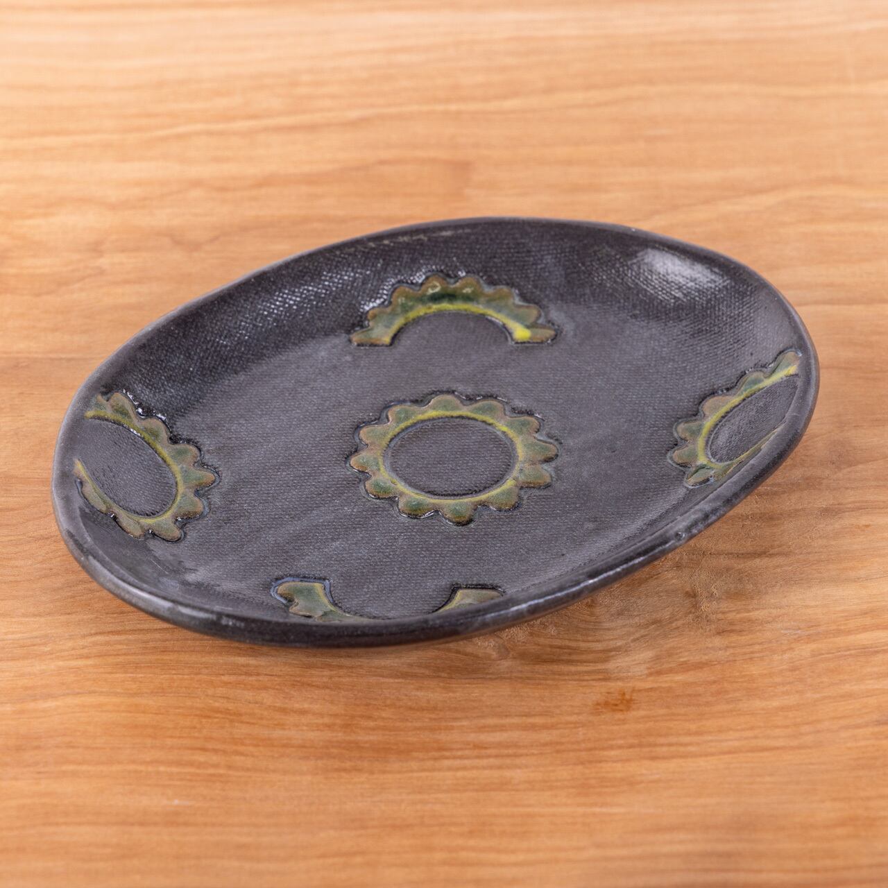 ゴーヤー柄のオーバル中皿 黒