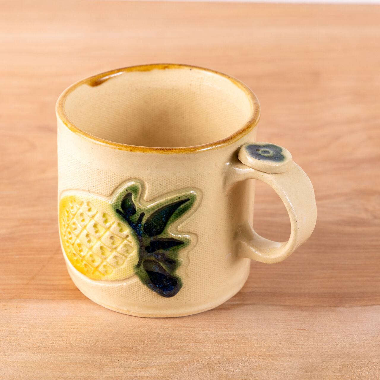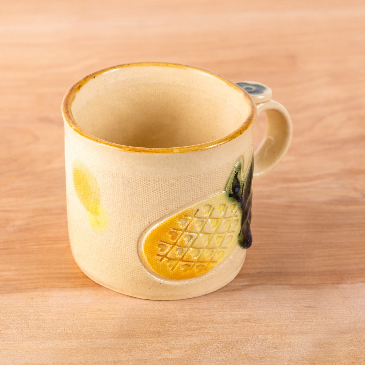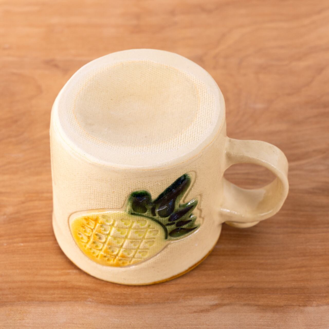 「パイナップル」をモチーフにした、沖縄の伝統的な焼物“やちむん”のマグカップです。