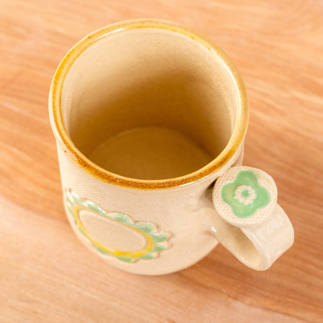 「ゴーヤー」をモチーフにした、沖縄の伝統的な焼物“やちむん”のマグカップです。