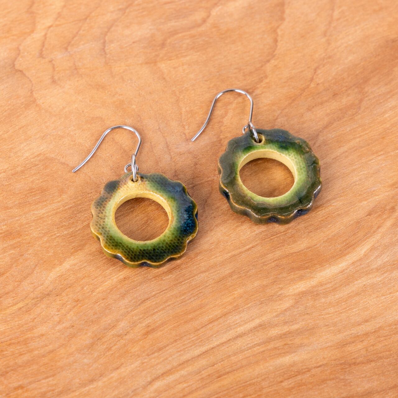 「ゴーヤー」をモチーフにした、沖縄の伝統的な焼物“やちむん”のピアス・イヤリングです。