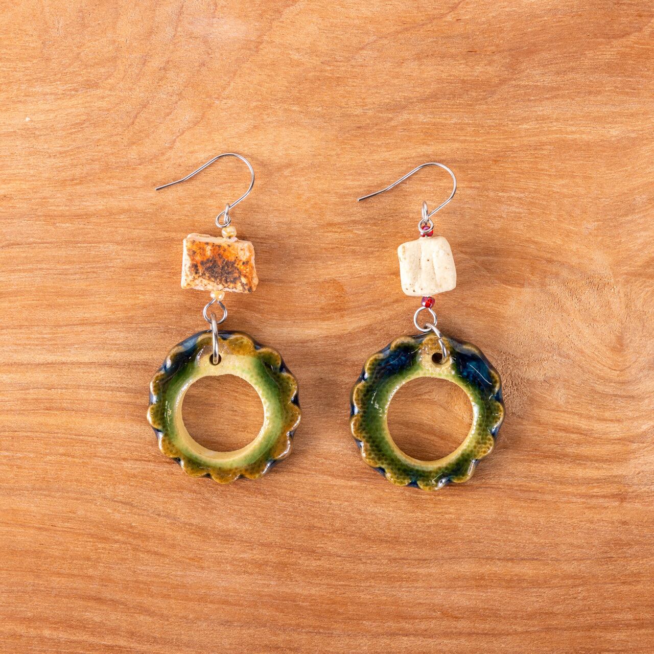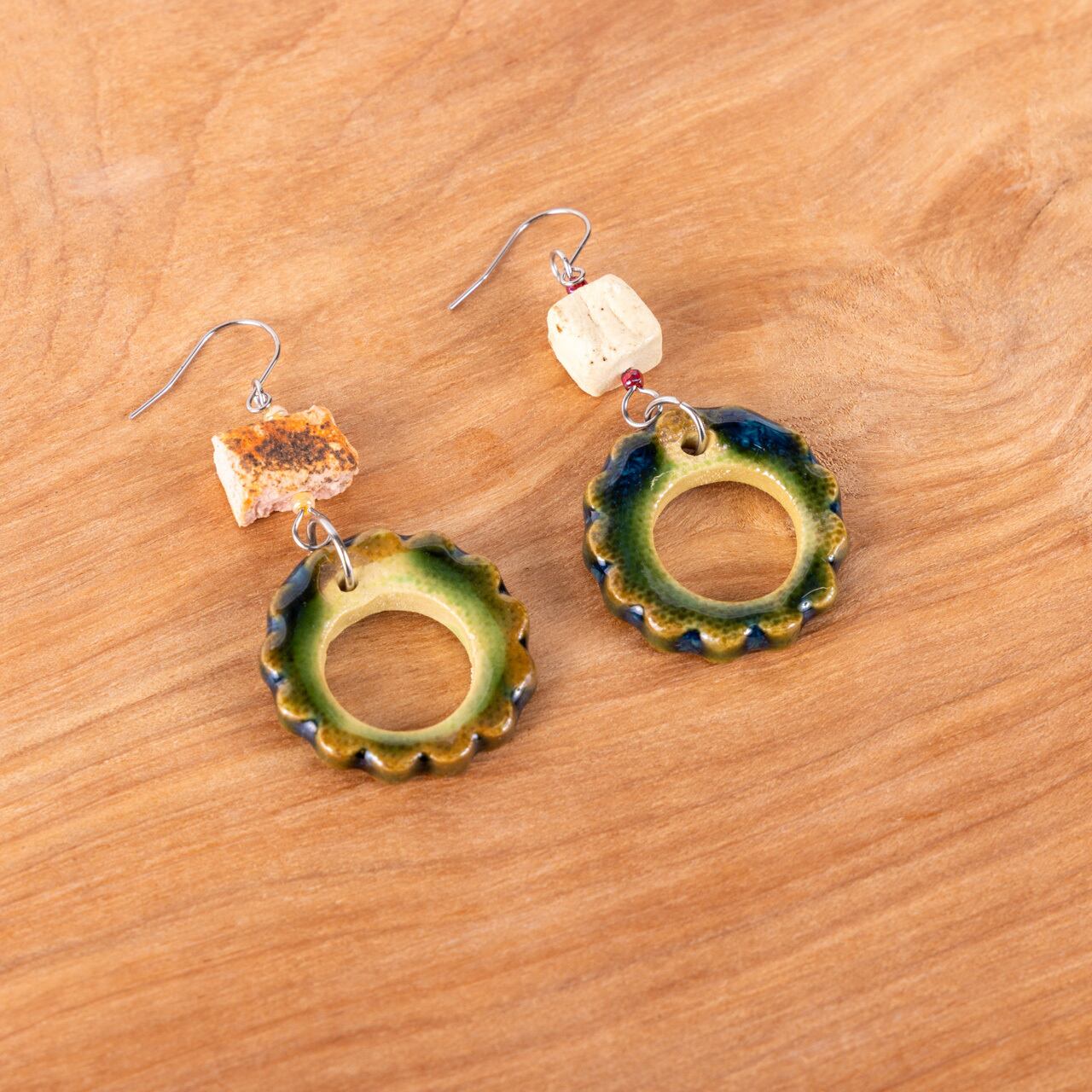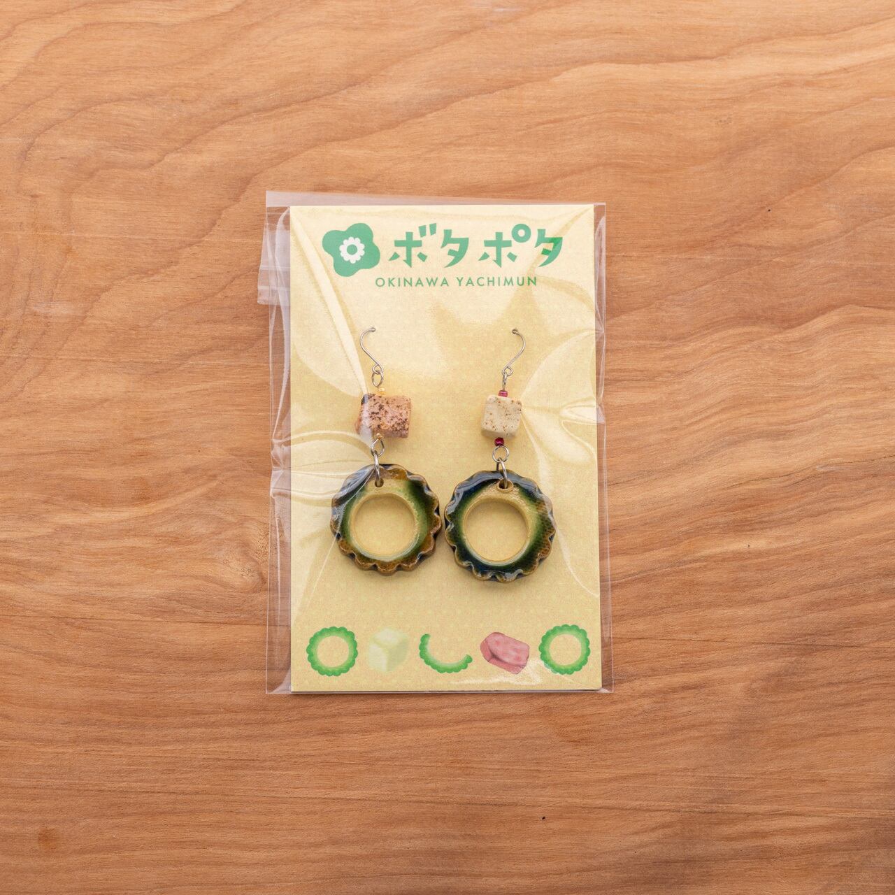 「ゴーヤー」をモチーフにした、沖縄の伝統的な焼物“やちむん”のピアス・イヤリングです。