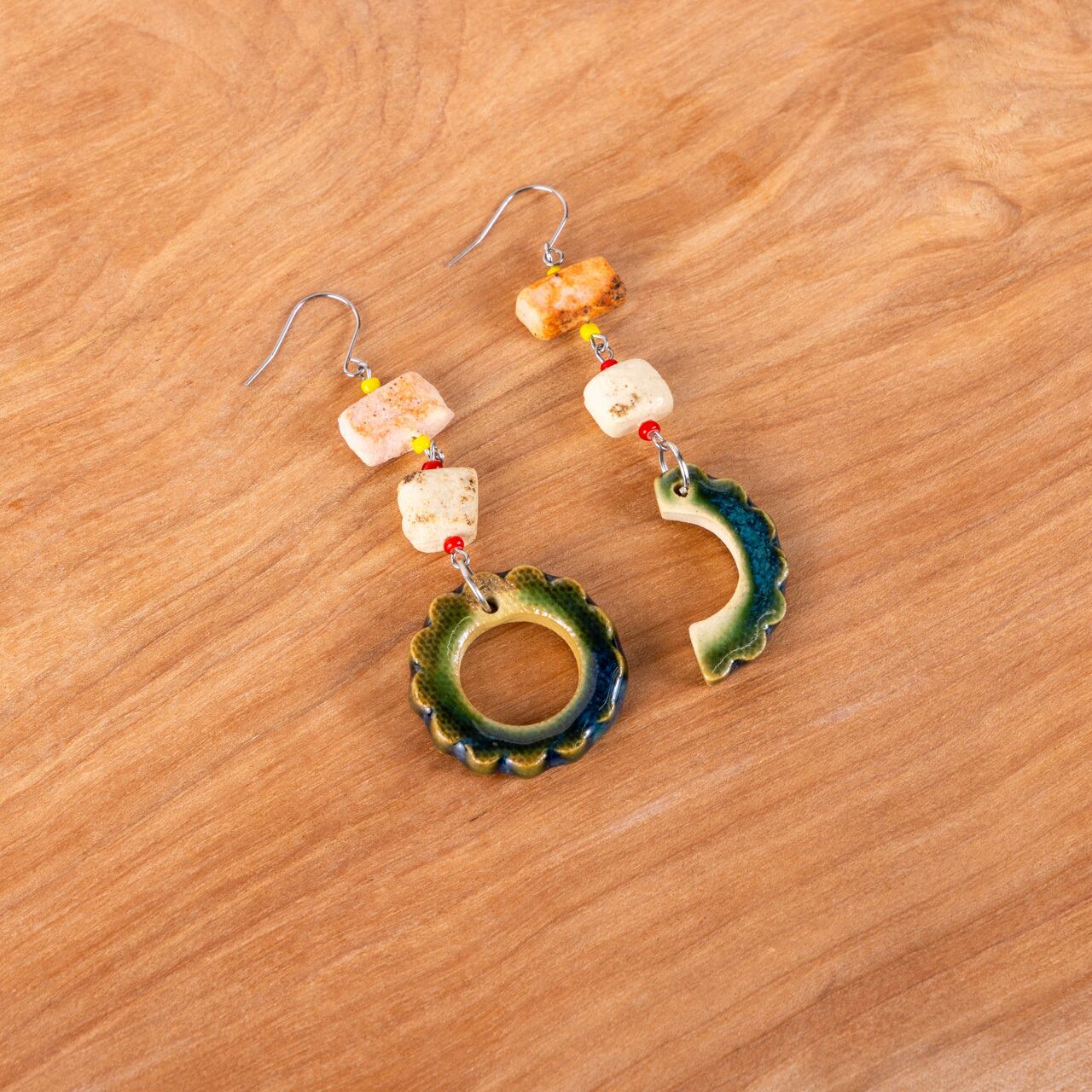 「ゴーヤー」をモチーフにした、沖縄の伝統的な焼物“やちむん”のピアス・イヤリングです。