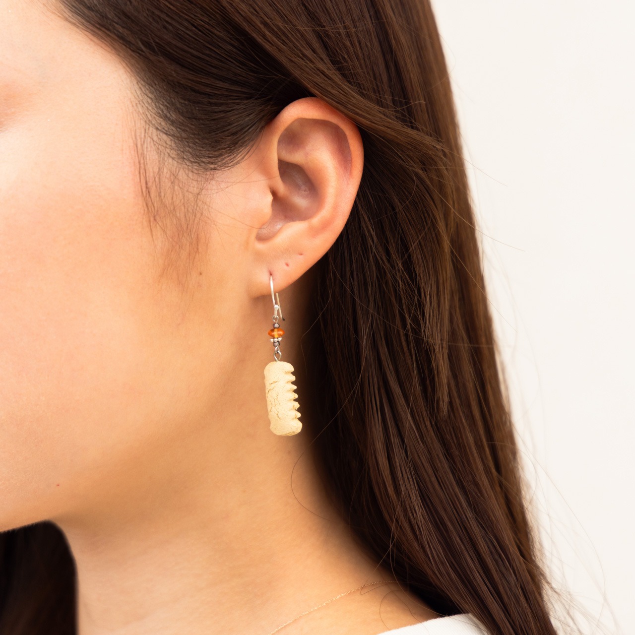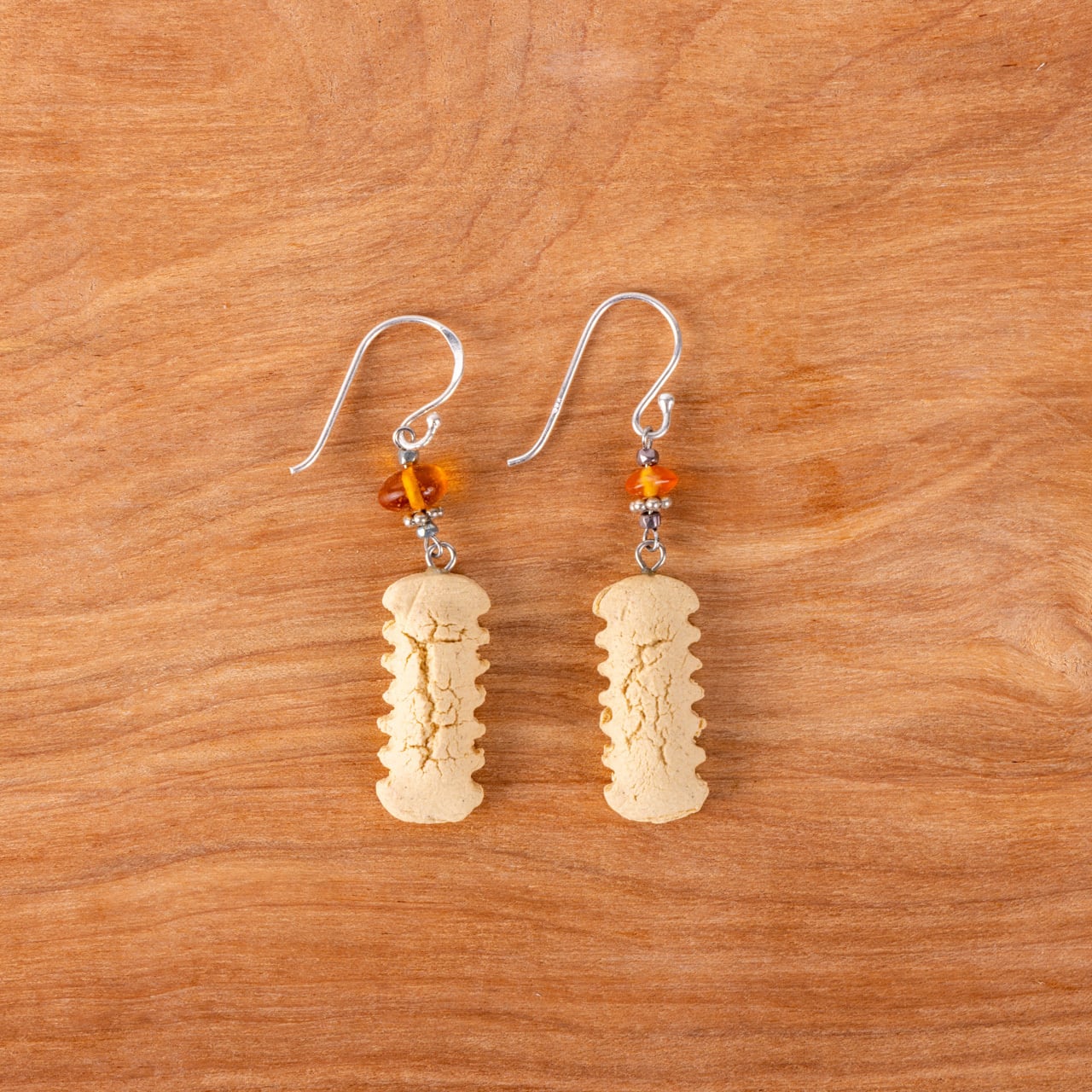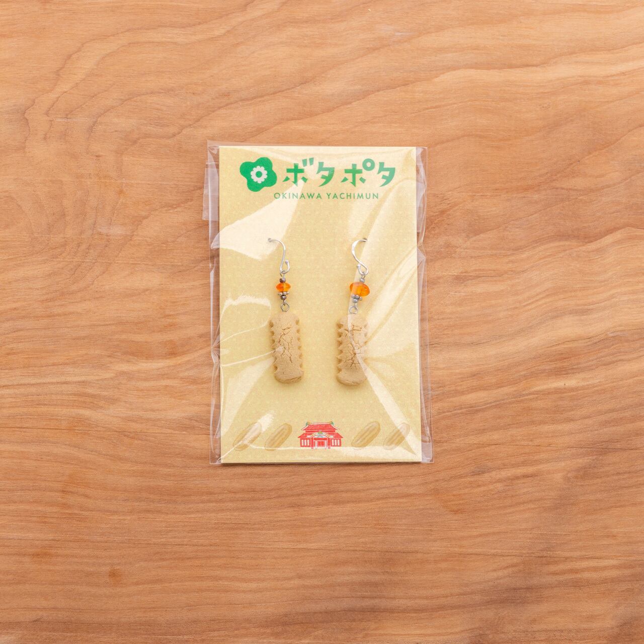 「ちんすこう」をモチーフにした、沖縄の伝統的な焼物“やちむん”のピアス・イヤリングです。